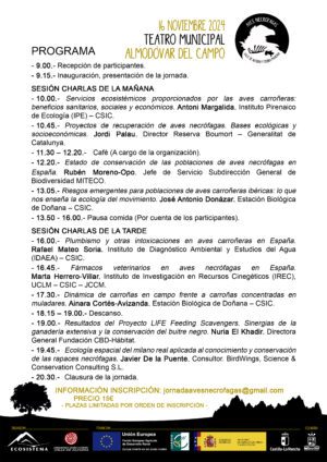 A lo largo de la jornada se desarrollarán ponencias de gran calado impartidas por científicos y gestores de relevancia nacional e internacional en la conservación estas aves. Se trataran temas como la ecología espacial, amenazas y riesgos emergentes para las aves necrófagas , servicios ecosistemicos y su relación con la ganadería extensiva.