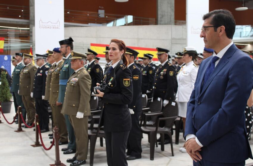 A los pies de la fortaleza, la bandera fue plegada ante la formación de participantes para ser izada a continuación, en presencia del Comendador, en el mástil situado sobre las almenadas murallas del castillo calatravo, junto a su torre del homenaje.