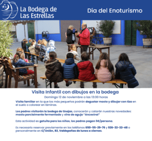 Visita familiar en la que los más pequeños podrán degustar mosto y dibujar con tiza en el suelo y colorear en láminas.