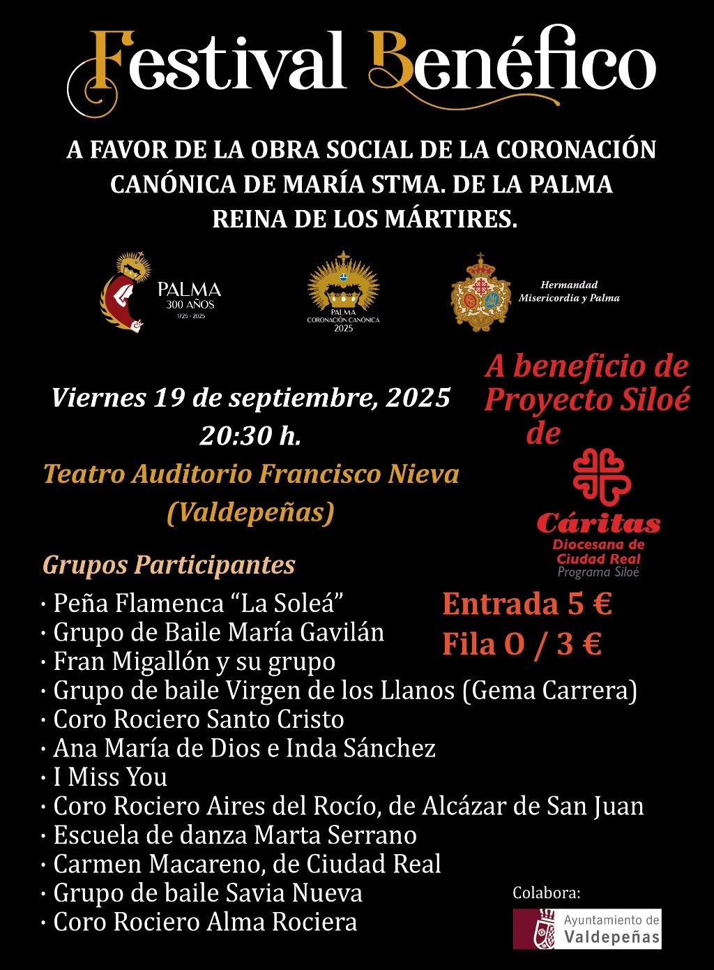Este Festival Benéfico está organizado por la Hermandad de Misericordia y Palma, y cuenta con la colaboración del Excmo. Ayuntamiento de Valdepeñas.