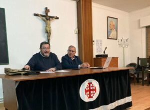 La hermandad del Santo Sepulcro por medio del hermano mayor, Jerónimo García Noves, hizo entrega tanto al conferenciante como a los participantes en la mesa redonda, de un recuerdo, en concreto de una fotografía del Sepulcro del Señor.