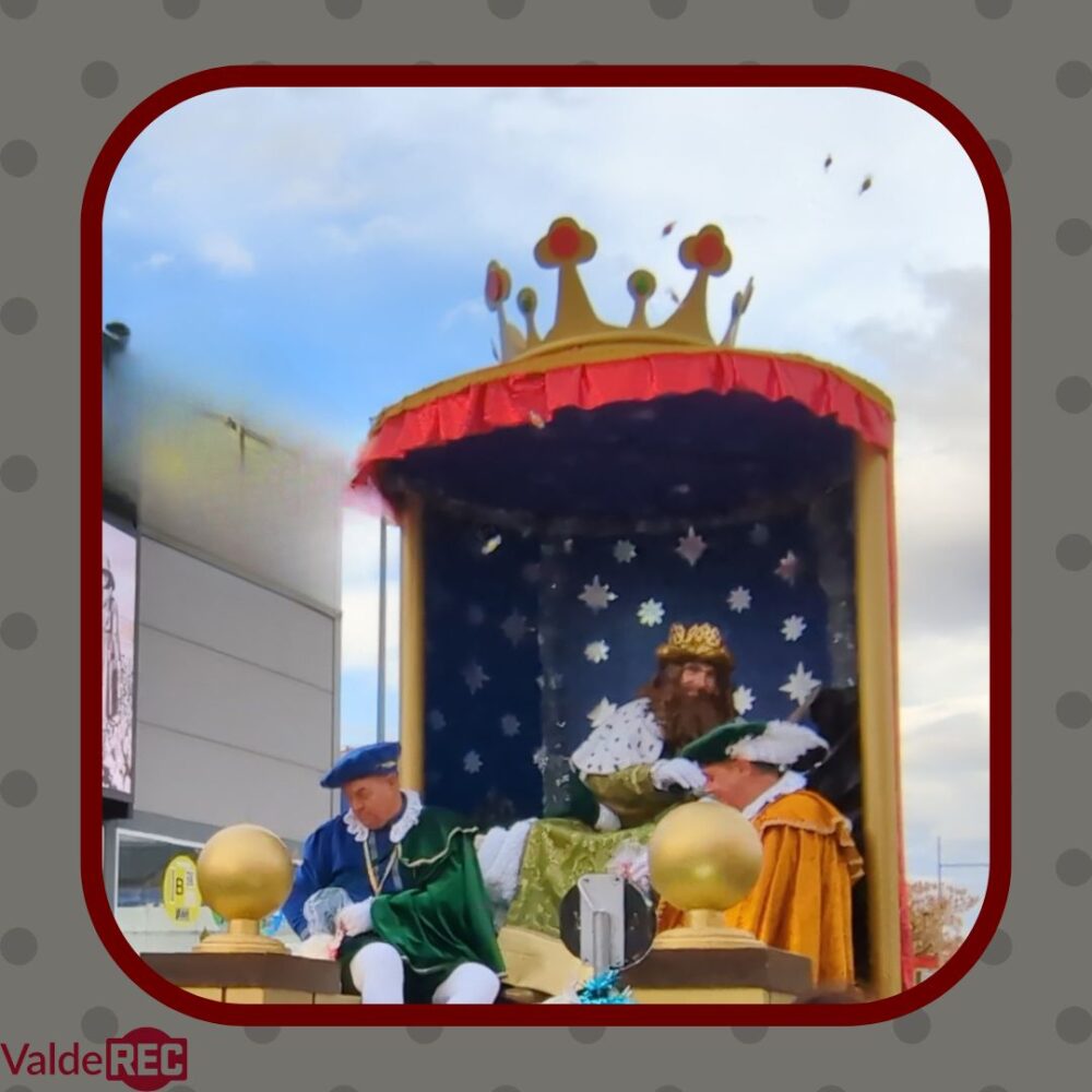 El tren neumático abre y le siguen el grupo de animación Chocolatinas, la peña Redacción Marchosa, la carroza Árbol de Navidad, la peña Kachico Pan, la carroza de Cenicienta, Peter Pan, las carrozas de angelitos, pastorcillos y Elfo, el portal de Belén, la Estrella y cierra el desfile las carrozas de Melchor, Gaspar y Baltasar.