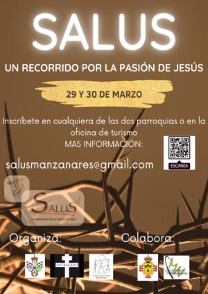En Salus, se propone un recorrido inmersivo para vivir de cerca los momentos más significativos del sacrificio redentor de Cristo en varios espacios emblemáticos de nuestra localidad. En grupos de treinta personas y acompañados por un guía, visitarán la ermita de San Blas, la capilla del colegio ‘San José’, el guardapasos de la hermandad del Cristo de la Columna, la ermita de la Veracruz. La ermita de San Antón y la ermita de la Virgen de la Paz, donde se representarán las diferentes escenas de la pasión junto a los pasos de las hermandades manzanareñas.